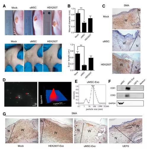 近年來(lái)研究發(fā)現(xiàn)干細(xì)胞外泌體與皮膚衰老相關(guān),外泌體不僅參與皮膚生理、病理過(guò)程,如調(diào)節(jié)皮膚微環(huán)境中促炎細(xì)胞因子分泌,促進(jìn)皮膚缺損處血管新生及膠原沉積,顯著促進(jìn)創(chuàng)面的愈合,以及調(diào)節(jié)皮膚成纖維細(xì)胞增殖分化,同時(shí)還在皮膚微環(huán)境發(fā)生病變時(shí)發(fā)揮特異性信息傳遞作用、抑制缺損皮膚中肌成纖維細(xì)胞的過(guò)度聚集和瘢痕形成。